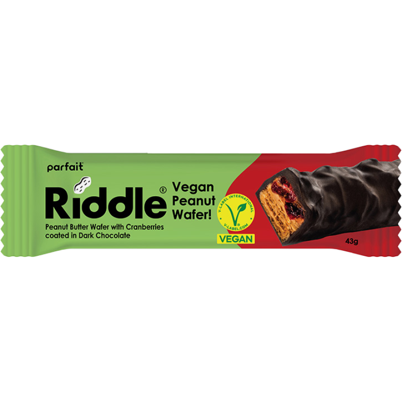 Μπάρα με φυστικοβούτυρο, κράνμπερι και επικάλυψη μαύρης σοκολάτας vegan 43g Riddle